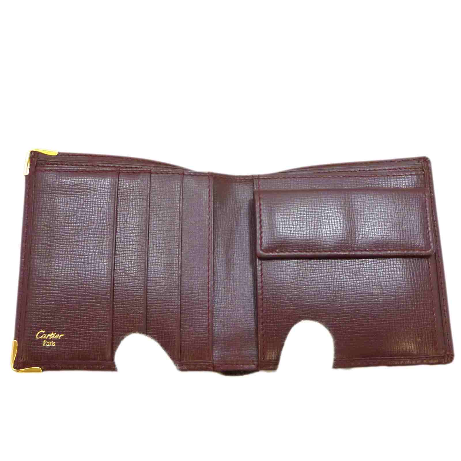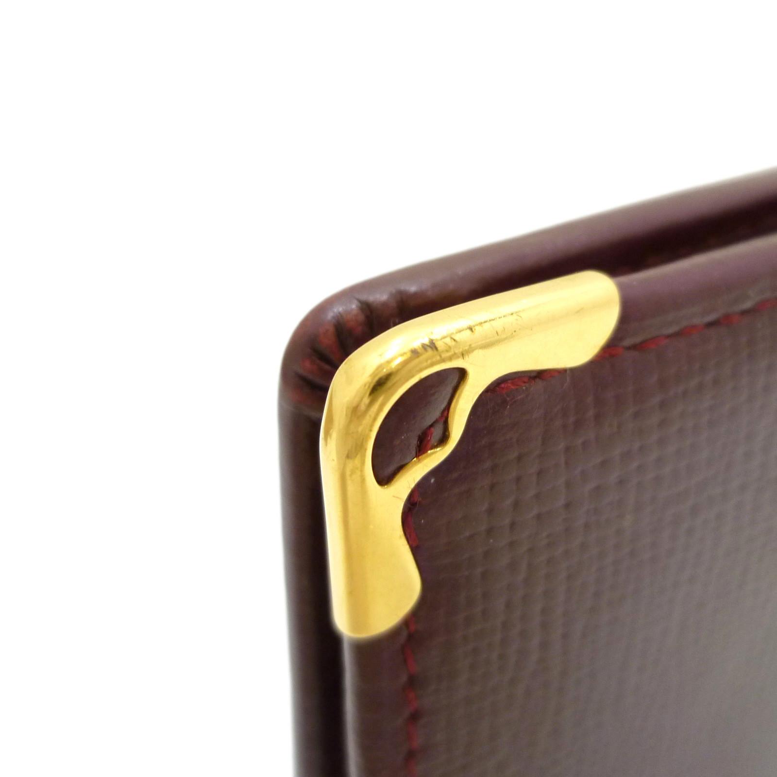 カルティエ マスト ドゥ 二つ折り 財布 ボルドー レザー